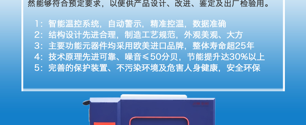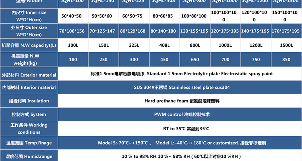 產(chǎn)品型號:JQHL-100L-1000L 品牌:劍 喬 用途:高低溫試驗箱 JQHL-100L-1000L為電子、電工、儀表、零部件、材料等試驗樣品進行高溫、低溫、或者恒定試驗的溫度環(huán)境變化后的參數(shù)及性能測試。適用于汽車、航空、高校,專業(yè)實驗室研究開發(fā)咨詢熱線:13829135130