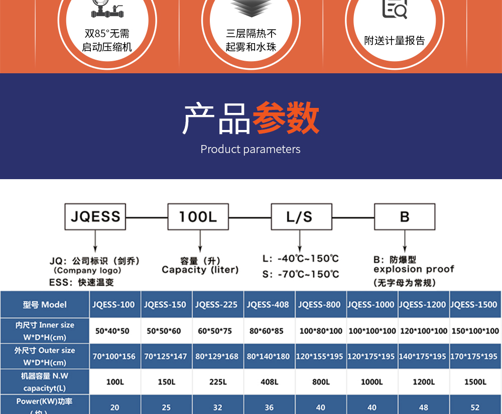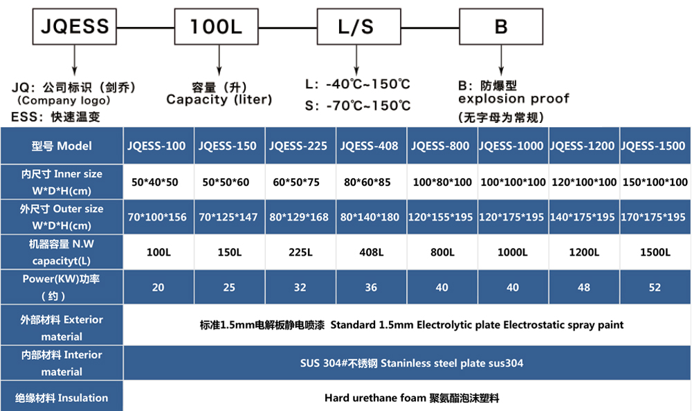快速溫變試驗(yàn)箱型號(hào)命名說明 及 參數(shù)表