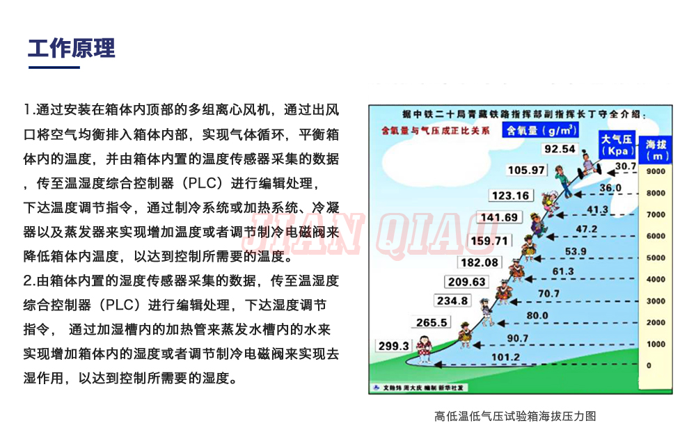 高空低氣壓試驗箱可以模擬高海拔、高空、(高原地區)氣候進行貯存運用、運輸可靠性試驗,并可同時對試件通電進行電氣性能參數的測試設備。適用于國防工業,航天工業自動化零組件,汽車部件,電池,平面顯示屏模組工業及相關產品料進行環境試驗 - 高溫試驗、低溫試驗、溫度變化試驗、低氣壓試驗、溫度高度試驗、低溫/低氣壓綜合試驗、高溫/低氣壓綜合試驗。